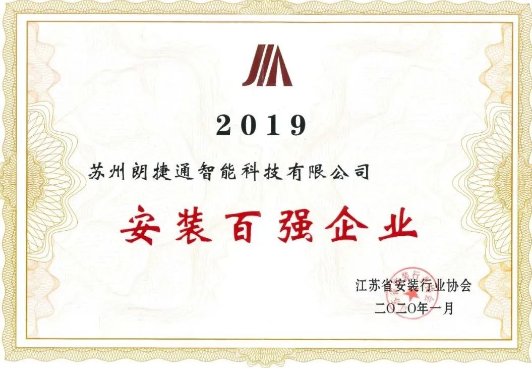 1月8日,江蘇省安裝行業(yè)協(xié)會下發(fā)公告文件,認定蘇州朗捷通智能科技有限公司等100家企業(yè)為2019年度江蘇安裝行業(yè)“安裝百強企業(yè)”,希望獲得“安裝百強”的企業(yè)充分發(fā)揮行業(yè)的引導作用,不斷提升創(chuàng)新發(fā)展能力,不斷取得新突破,打造江蘇“安裝百強”品牌,為推動江蘇安裝業(yè)高質(zhì)量發(fā)展走在全國前列,為建設美好新江蘇作出更大成績。