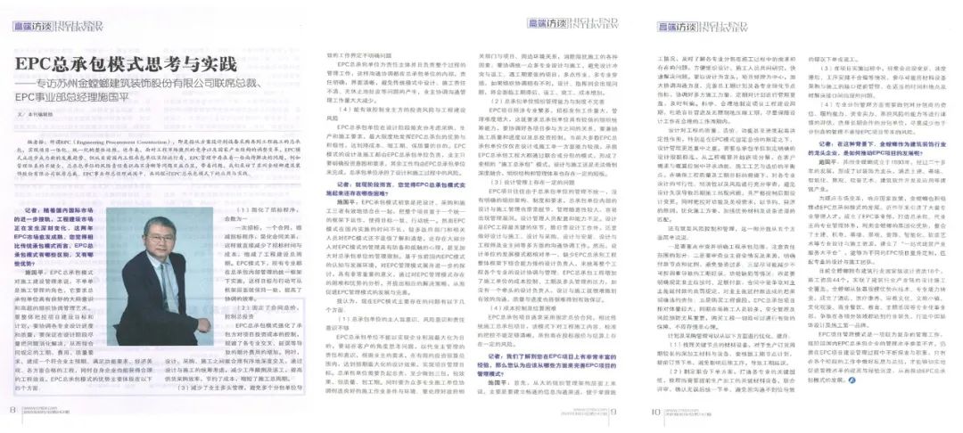 EPC總承包模式思考與實(shí)踐 ——專(zhuān)訪蘇州金螳螂建筑裝飾股份有限公司聯(lián)席總裁、EPC事業(yè)部總經(jīng)理施國(guó)平