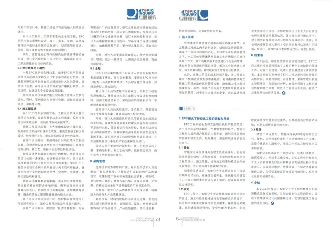 《智能建筑》雜志是經(jīng)國(guó)家科技部和國(guó)家新聞出版總署批準(zhǔn),由住房和城鄉(xiāng)建設(shè)部主管、中國(guó)建筑業(yè)協(xié)會(huì)主辦、《智能建筑》雜志社編輯出版,面向國(guó)內(nèi)外公開發(fā)行的中央級(jí)綜合指導(dǎo)類科技期刊!吨悄芙ㄖ冯s志是全國(guó)智能建筑領(lǐng)域首本專業(yè)性刊物,目前在行業(yè)中最具影響力。 淺談山東省公共資源中心EPC工程管理