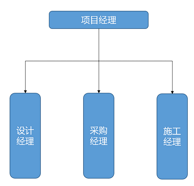 三、項(xiàng)目需求分析 本次建設(shè)范圍是與公共資源交易緊密相關(guān)的受理區(qū)、開標(biāo)區(qū)、評(píng)標(biāo)區(qū)及其附屬的答疑(詢標(biāo)、講標(biāo))區(qū)、二次報(bào)價(jià)區(qū)、樣品區(qū)、評(píng)委評(píng)審等待區(qū)(專用通道、評(píng)委餐廳、評(píng)委隔夜休息區(qū)),主要包含上述區(qū)域的信息交互系統(tǒng)、交易現(xiàn)場(chǎng)管理系統(tǒng)、支撐系統(tǒng)等。 各子系統(tǒng)使用身份認(rèn)證系統(tǒng)驗(yàn)證使用人身份,與電子交易平臺(tái)體系無(wú)縫雙向傳輸數(shù)字信息,統(tǒng)一使用本地?cái)?shù)據(jù)中心的安全防護(hù)、數(shù)字線路、存儲(chǔ)空間。 智能化建設(shè)要滿足電子交易平臺(tái)體系的運(yùn)行和業(yè)務(wù)流程中有關(guān)場(chǎng)地智能化要求。電子交易平臺(tái)體系負(fù)責(zé)提供所有交易(服務(wù)、監(jiān)管)的軟件、信息、內(nèi)容、業(yè)務(wù)流程、人員身份、人員權(quán)限、場(chǎng)所位置、時(shí)間、數(shù)據(jù)流轉(zhuǎn)方式、數(shù)據(jù)存儲(chǔ)需求等有關(guān)場(chǎng)地智能化運(yùn)行的數(shù)據(jù)。 本次智能化建設(shè)的信息交互系統(tǒng)、交易現(xiàn)場(chǎng)管理系統(tǒng)、支撐系統(tǒng)及其各子系統(tǒng)負(fù)責(zé)執(zhí)行電子交易平臺(tái)體系發(fā)出的具體控制指令。 四、組織管理 根據(jù)項(xiàng)目的規(guī)模特點(diǎn),公司成立了EPC總承包工程項(xiàng)目部,組織項(xiàng)目工程實(shí)施。 針對(duì)本次EPC項(xiàng)目的特質(zhì)和公司管理流程的實(shí)際情況,公司任命一名項(xiàng)目經(jīng)理,總管整個(gè)項(xiàng)目運(yùn)行,再由公司設(shè)計(jì)院、采購(gòu)部門、施工分公司分別派出設(shè)計(jì)經(jīng)理、采購(gòu)經(jīng)理和施工經(jīng)理配合項(xiàng)目經(jīng)理推進(jìn)項(xiàng)目施工。 工程總承包項(xiàng)目管理,實(shí)行以責(zé)、權(quán)、利、效為統(tǒng)一原則的項(xiàng)目經(jīng)理責(zé)任制,對(duì)工程總承包項(xiàng)目的啟動(dòng)至收尾的整個(gè)過(guò)程的管理。 圖3 項(xiàng)目組織架構(gòu)圖