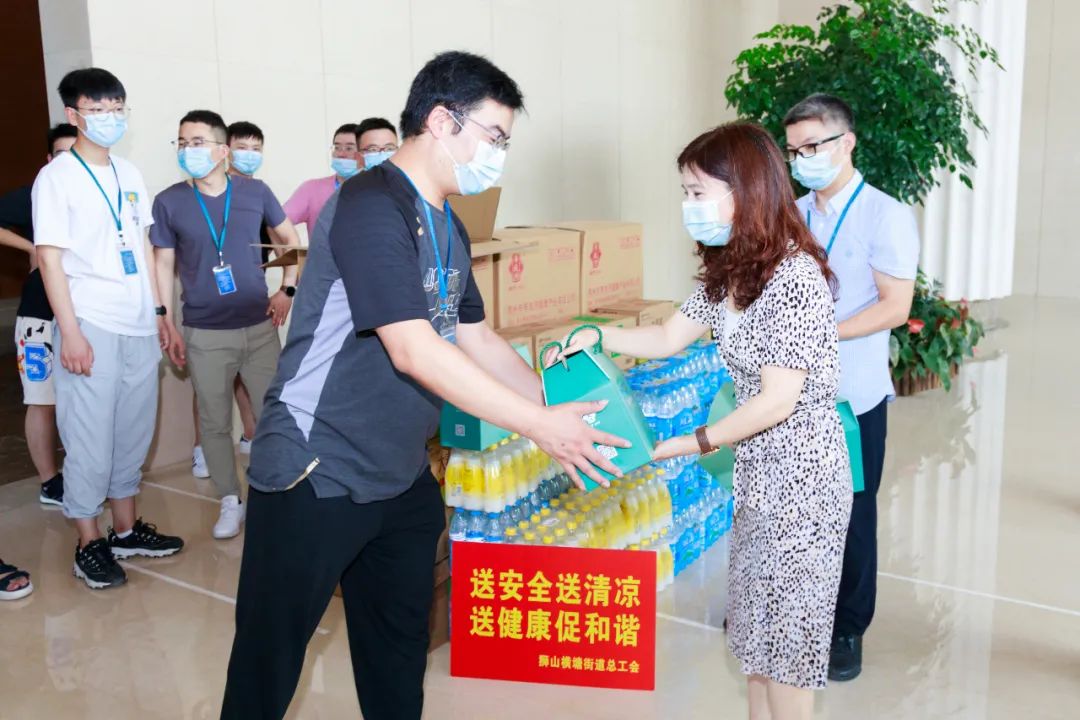 此次彭主任一行切實(shí)考慮員工所需,帶來(lái)了毛巾、清涼油、菊花茶等消暑用品,而這批慰問(wèn)品也在第一時(shí)間由朗捷通工會(huì)領(lǐng)導(dǎo)、工管領(lǐng)導(dǎo)送往附近的項(xiàng)目上,為炎炎夏日依舊奮斗在一線的項(xiàng)目人員送上貼心的關(guān)懷。▲ 新建廠區(qū)(一期)智能化項(xiàng)目▲ 蘇州金雞湖凱賓斯基酒店客房改造智能化項(xiàng)目▲ 蘇州高新區(qū)獅山廣場(chǎng)項(xiàng)目炎炎夏日送清涼,絲絲關(guān)愛(ài)入心田,一份清涼、一份關(guān)懷、一份愛(ài)心,此次獅山街道領(lǐng)導(dǎo)一行讓朗捷通一線奮斗者深切感受到了黨和政府的關(guān)心與愛(ài)護(hù)。作為高新區(qū)企業(yè)的一份子,朗捷通將始終不忘初心,不懼苦難,腳踏實(shí)地,在奮斗中謀發(fā)展。