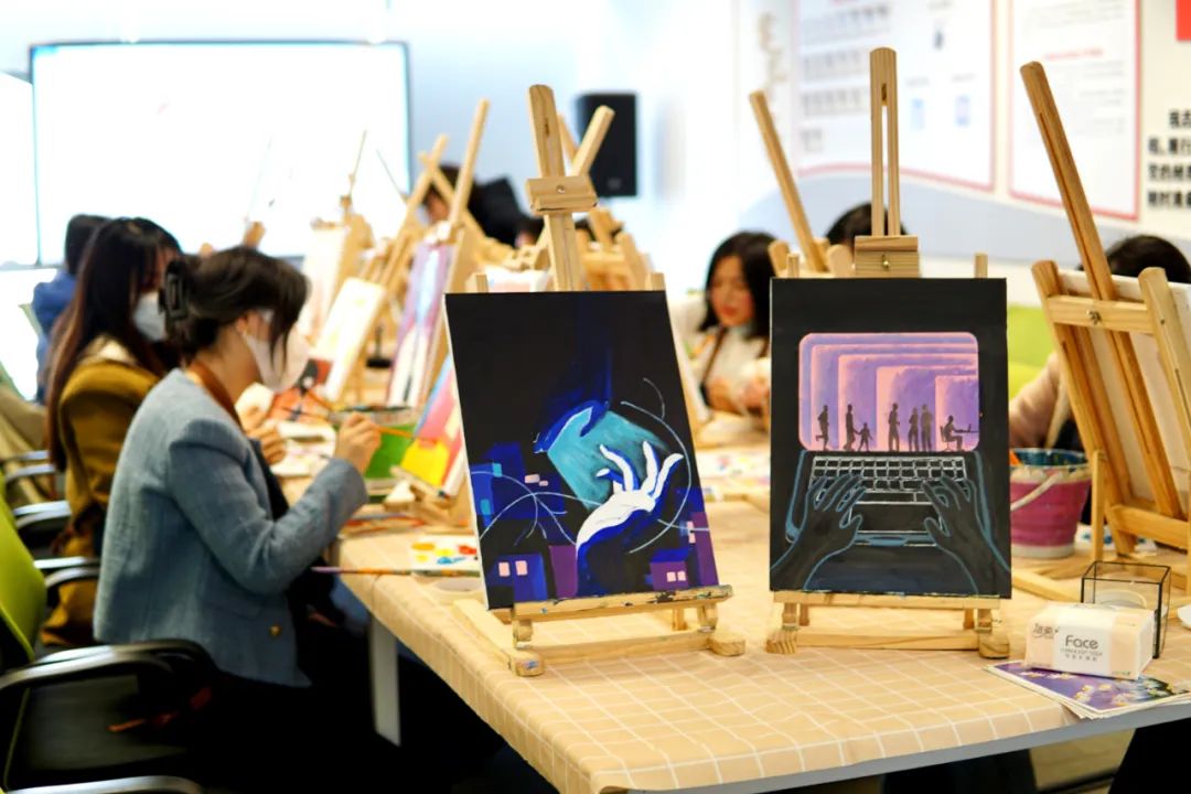 女神節(jié)之際,朗捷通工會組織進行了一場零基礎(chǔ)油畫活動,在白紙上盡情地創(chuàng)作,將自己從工作和家庭的繁忙中剝離,享受著屬于自己的時間。