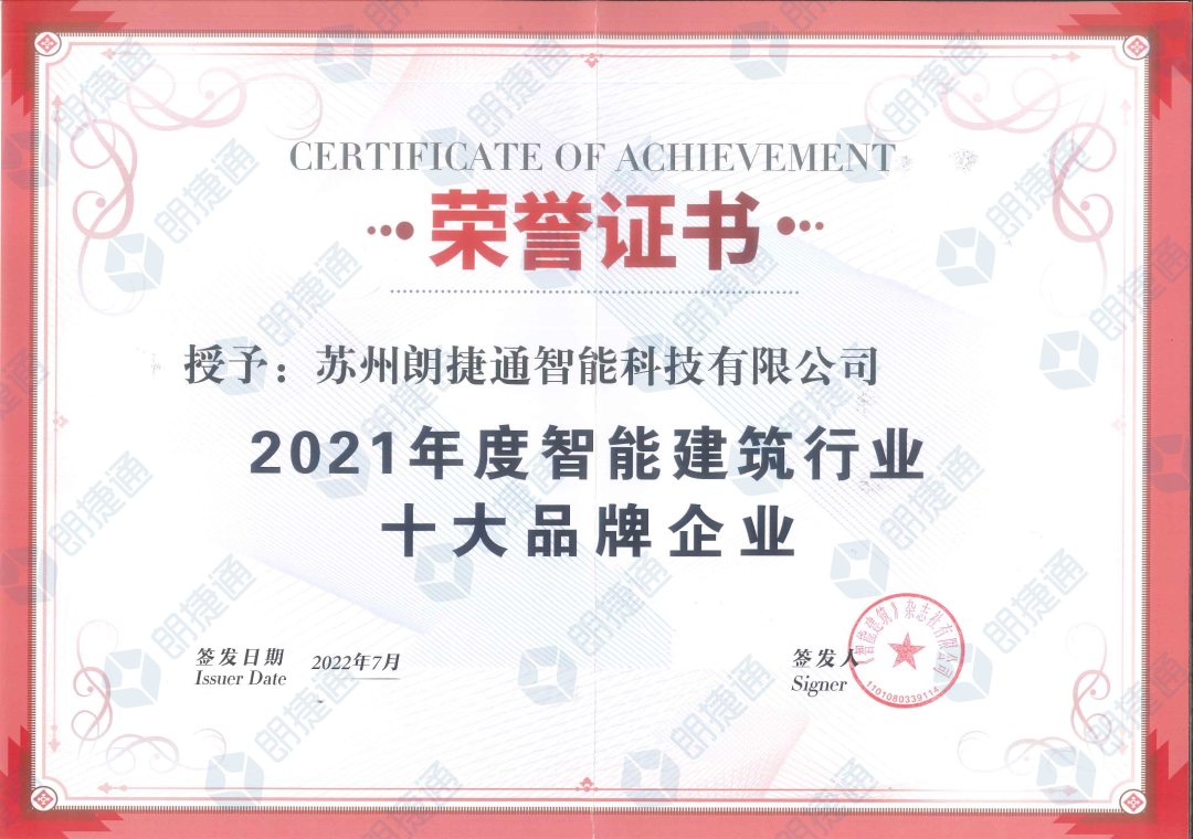 榮耀時刻 | 朗捷通榮獲2021年度智能建筑行業(yè)十大品牌企業(yè) |