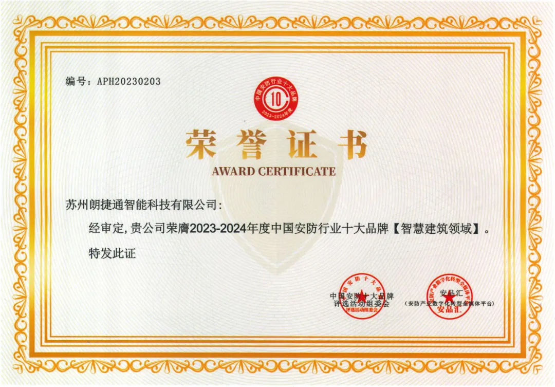 ![]() 近期,朗捷通榮獲兩項(xiàng)榮譽(yù),分別是“ 2023年度數(shù)字安防工程建設(shè)先進(jìn)單位獎(jiǎng)”和“2023-2024年度中國(guó)安防行業(yè)十大品牌”。