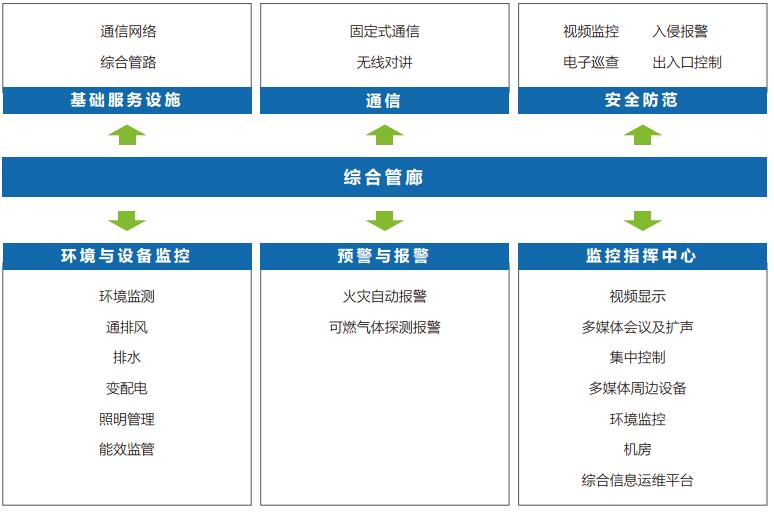 以綜合管廊監(jiān)控報警及運維管理平臺為核心,通過內(nèi)部環(huán)境進行監(jiān)測和監(jiān)控,實時、自動監(jiān)測地下管廊內(nèi)的環(huán)境,利用綜合信息管理平臺進行統(tǒng)一監(jiān)控、管理、調(diào)度和指揮。