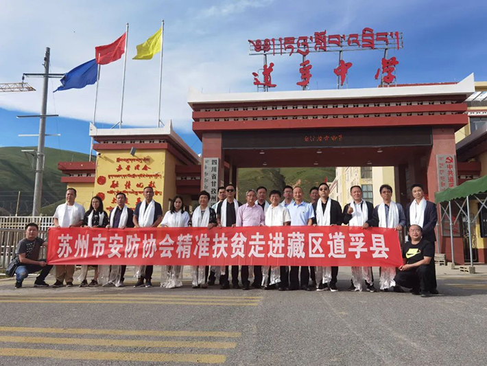 近日,在蘇州市安全技術(shù)防范行業(yè)協(xié)會(huì)秘書(shū)長(zhǎng)王坤泉的帶領(lǐng)下,朗捷通與其他安防協(xié)會(huì)企業(yè)代表一行16人,冒著酷熱的天氣和強(qiáng)烈的高反,歷經(jīng)13小時(shí)的千里車程,傾情抵達(dá)道孚,迅疾在道孚中學(xué)舉行了蘇州市安防協(xié)會(huì)精準(zhǔn)扶貧藏區(qū)道孚縣捐贈(zèng)儀式。