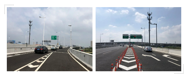 立交呈現(xiàn)全迂回定向“渦輪形立交”,在常規(guī)渦輪立交的基礎(chǔ)上,增加與蘇嘉杭吳中出口直接相連的G匝道,為蘇州市區(qū)規(guī)模最大、施工復(fù)雜的快速路互通樞紐。