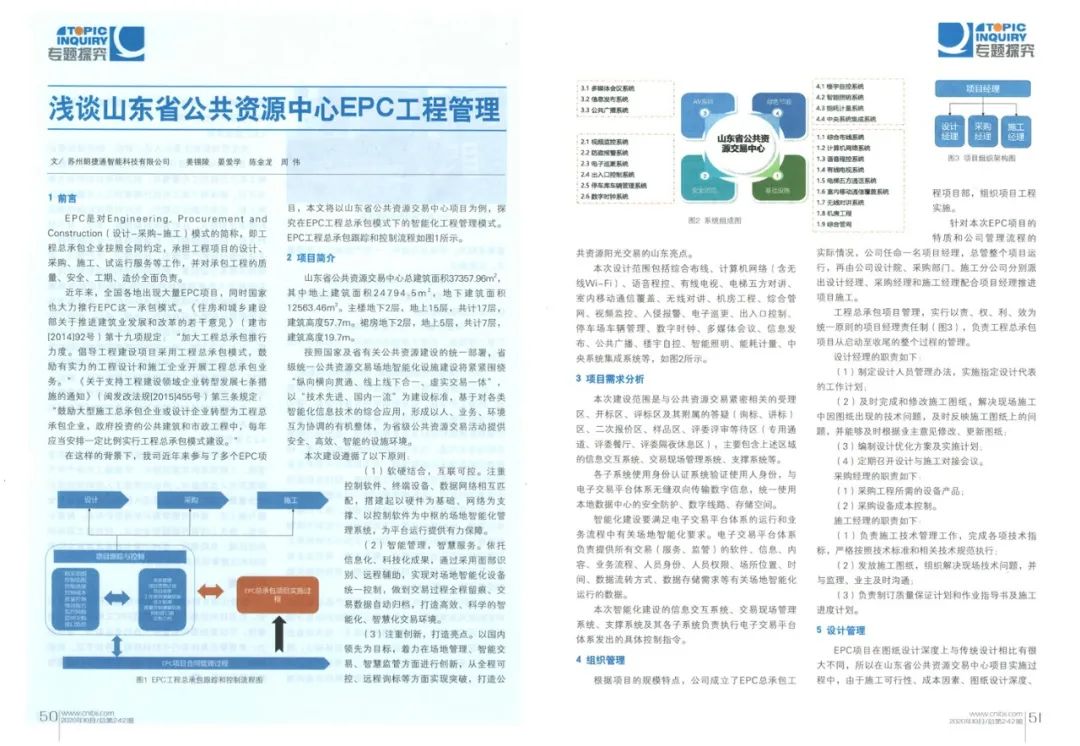 淺談山東省公共資源中心EPC工程管理 【姜錫陵 晏愛(ài)學(xué) 陳金龍 周 偉】