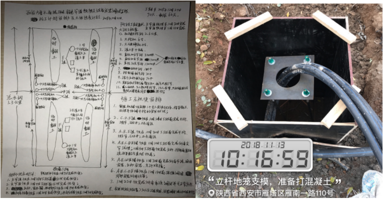 班組施工人員的調(diào)配:整個(gè)街區(qū)長(zhǎng)度達(dá)到2公里,分南北兩個(gè)區(qū)域,設(shè)置兩個(gè)班組的同時(shí),尋求公司工管中心支撐,確定備用班組,高峰時(shí)南北區(qū)班組人員達(dá)到近百人。1)所有設(shè)備采購(gòu)均采用公司集采的方式,采購(gòu)部和內(nèi)審部領(lǐng)導(dǎo)到現(xiàn)場(chǎng)協(xié)助采購(gòu)相關(guān)流程,“邊設(shè)計(jì)邊施工”,確定設(shè)計(jì)方案后由項(xiàng)目部同設(shè)計(jì)人員確定設(shè)備材料表,采購(gòu)員快速介入選型論證、比價(jià)以及采購(gòu)合同流程,快速推進(jìn)設(shè)備的采購(gòu)落實(shí)工作;2)后場(chǎng)盯貨:如集成桿的特殊定制效果,安排采購(gòu)和分司人員到工廠盯貨,直到供貨完成為止;3)每個(gè)訂單安排固定人員負(fù)責(zé)流程節(jié)點(diǎn)、備貨節(jié)點(diǎn)、物流節(jié)點(diǎn)、調(diào)試人員到場(chǎng)時(shí)間等,做到每一個(gè)節(jié)點(diǎn)都責(zé)任到人。