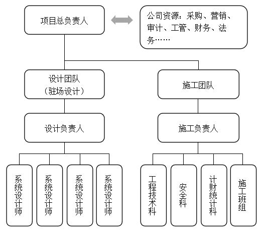 EPC項(xiàng)目團(tuán)隊(duì)組織架構(gòu)本項(xiàng)目建筑面積大、系統(tǒng)全、質(zhì)量要求高,而且工期較為緊張。針對(duì)這一情況,我司集中優(yōu)勢(shì)管理人員對(duì)其進(jìn)行管理,安排人員分工和職責(zé)。其中項(xiàng)目總負(fù)責(zé)人負(fù)責(zé)項(xiàng)目整體關(guān)鍵進(jìn)度節(jié)點(diǎn)的把控、關(guān)鍵質(zhì)量的把控、重大問題的協(xié)調(diào)解決,協(xié)調(diào)外部與內(nèi)部各種資源,對(duì)整個(gè)項(xiàng)目起到統(tǒng)籌規(guī)劃的作用。