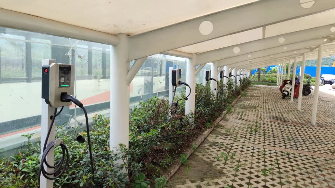 增設(shè)電車充電樁,更添便利:隨著新能源車越來越普及,電車充電樁也成了公共建筑的標(biāo)配設(shè)施。金融新天地內(nèi)的電動(dòng)汽車棚內(nèi)同時(shí)配備慢充和快充兩種不同類型的充電樁,支持二維碼掃碼付款,在后臺(tái)即可設(shè)置收費(fèi)標(biāo)準(zhǔn)。