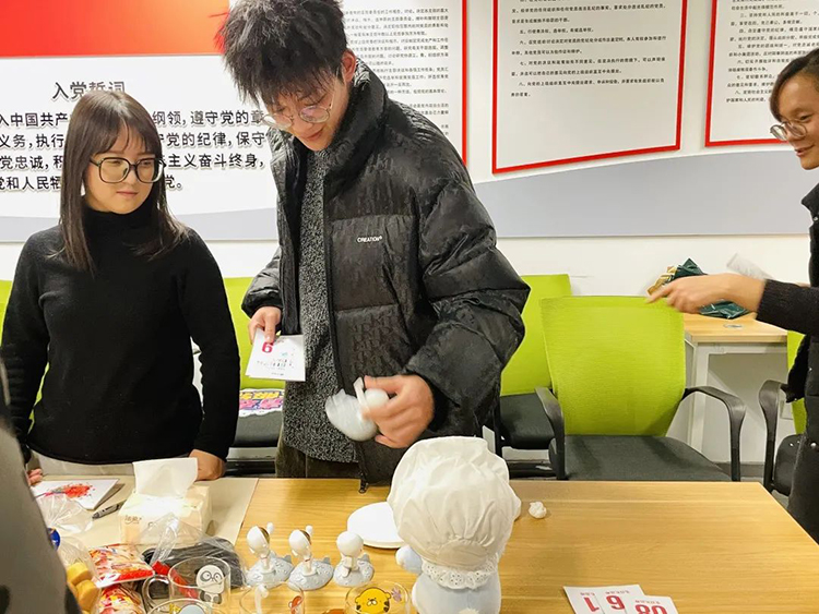拿到號(hào)碼牌后,大家各自挑選著心儀的禮物。恰逢近日降溫,冬日里必不可少的可愛帽子與熱水袋自然成為了炙手可熱的單品,還有麻將牌造型的小夜燈也是深受年輕小伙伴的喜愛。