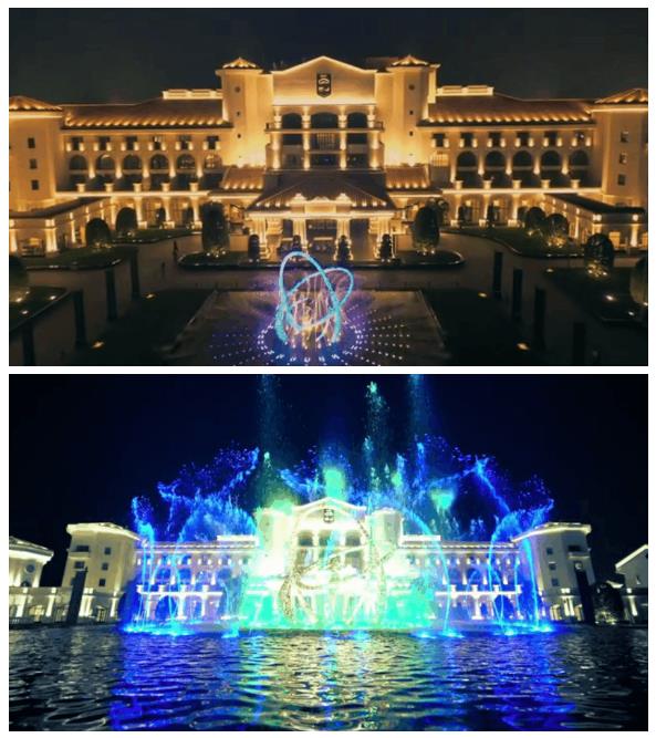 在黑夜的籠罩下,如夢(mèng)似幻的水幕投影,變換莫測(cè)的激光束,配合震撼的音響效果,如同海市蜃樓一般的景象,讓人如臨仙境。